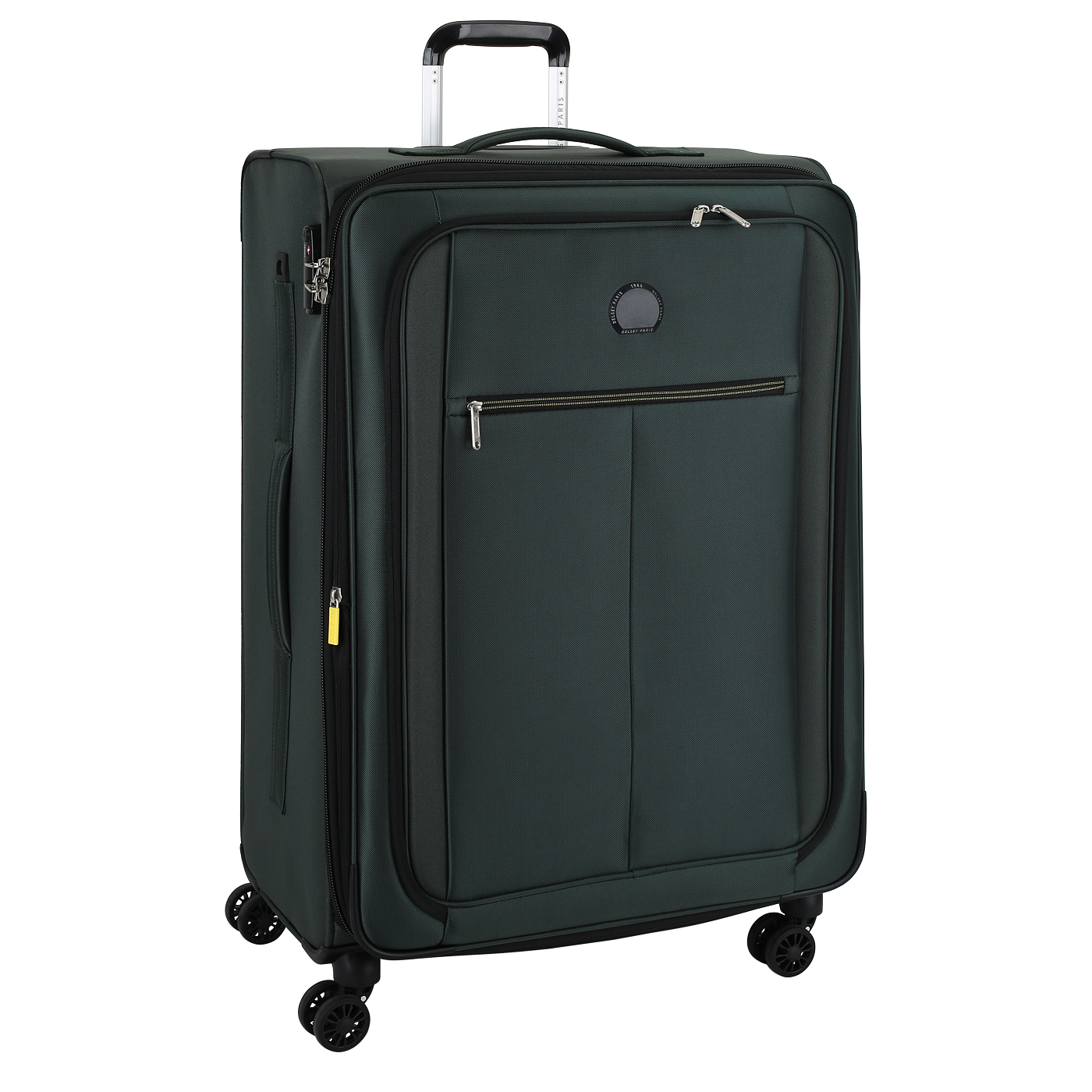 Текстильный чемодан на двойных маневренных колесах имеет внутри 2 отделения и 2 кармана на молнии, а снаружи одно отделение на молнии и внешний карман. Оборудован встроенной выдвижной ручкой, верхней и боковой ручкой.