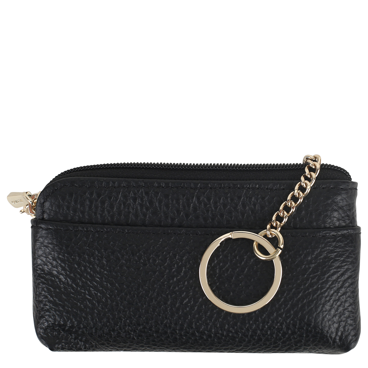 Черная кожаная ключница на молнии