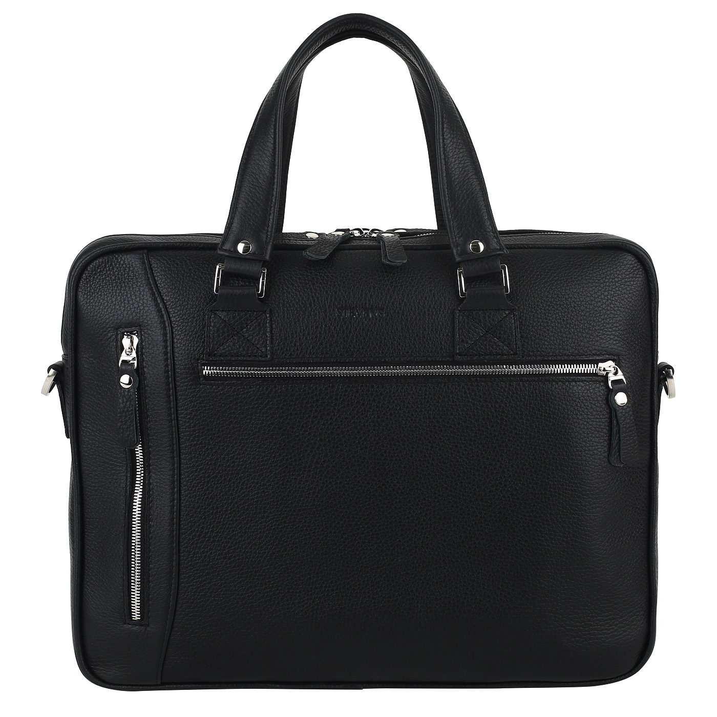 Двойная молния, кармашки для визиток и авторучек, отделения для ноутбука и документов